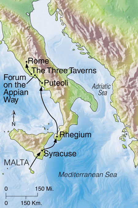 In der Apostelgeschichte erlitt Paulus Schiffbruch im Nordosten von Malta (Apg. 27,39ff). Er und alle anderen Schiffbrüchigen wurden von den Bewohnern der Insel freundlich empfangen. Paulus heilte den Vater des Statthalters der Insel und viele andere Kranke. Sie blieben drei Monate dort und wurden bei ihrer Abreise großzügig mit allem versorgt, was sie brauchten (Apg. 28,1-11).