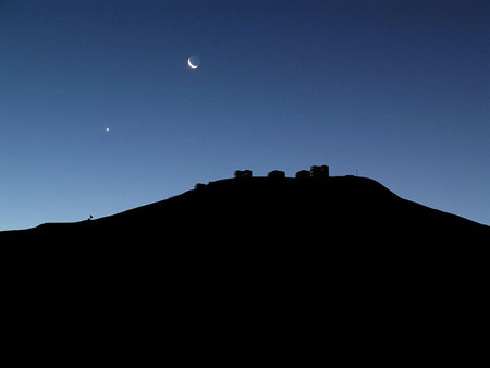 Der Morgenstern (links) und der abnehmende Mond (rechts)